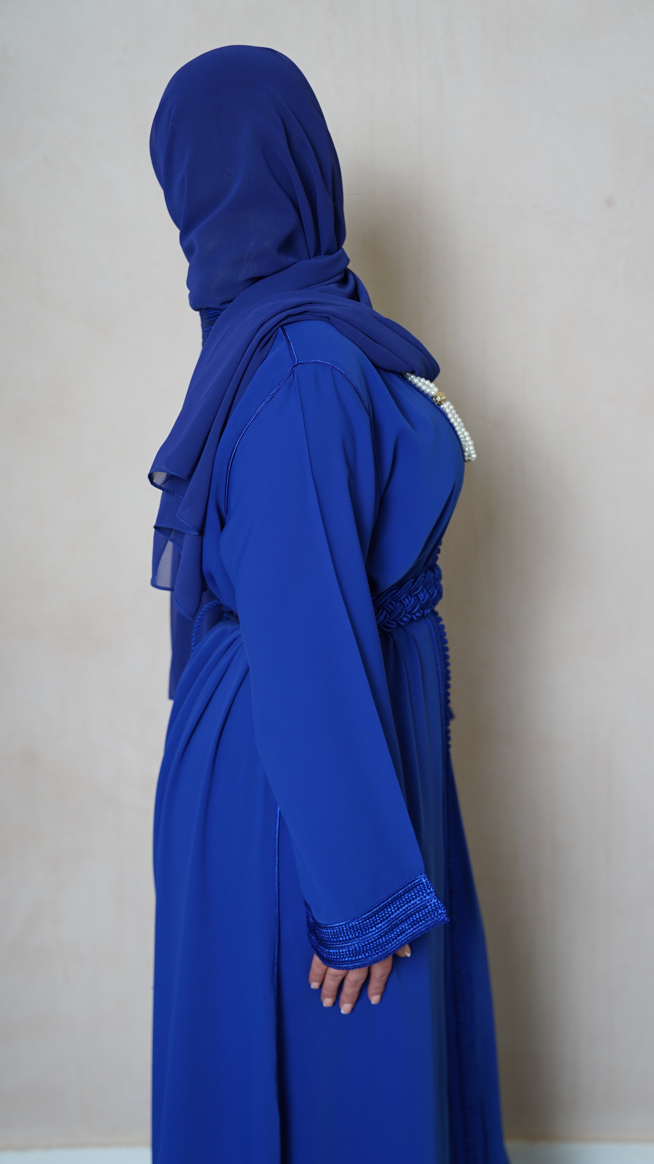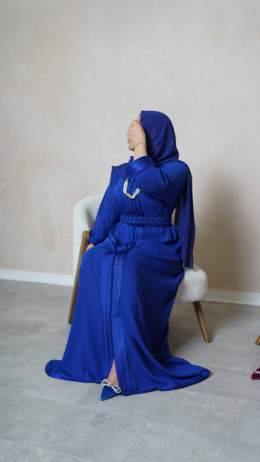 Discover our elegant "Beldi Collection", where tradition meets timeless beauty. Each kaftan features a double Beldi Sfifa, showcasing the artistry of Moroccan design. Indulge in vibrant colors and a flattering v-neckline that enhances your natural beauty. With a two-piece belt, our kaftans offer versatile styling options. Embrace heritage and refined style with our Moroccan kaftans, suitable for formal events or special gatherings.